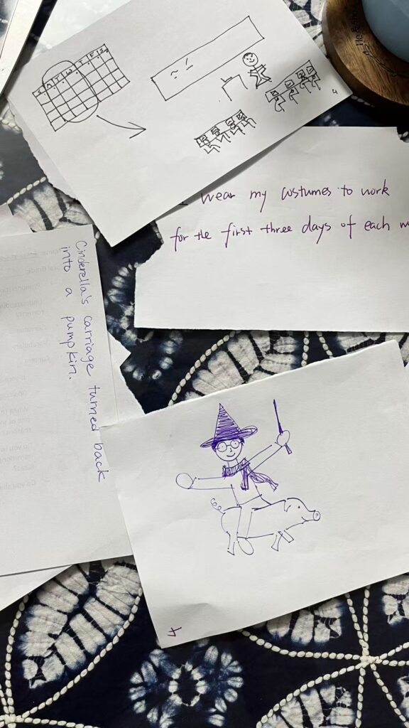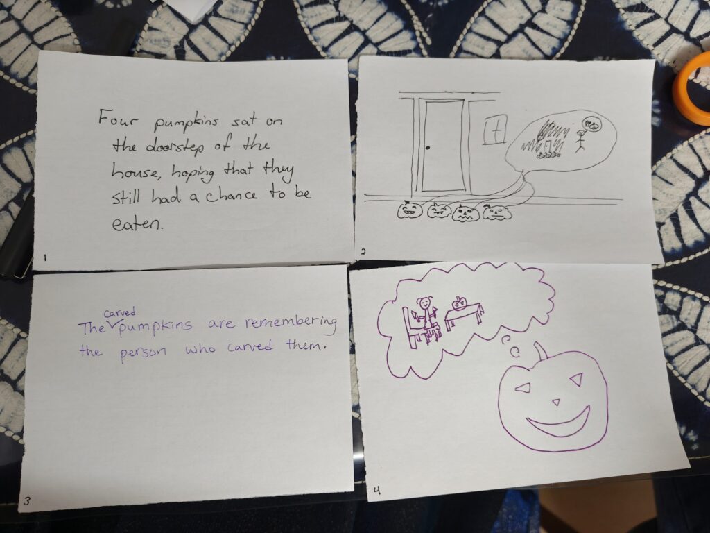 Next, we did the write-draw-write game that is one of my favorites for anytime of the year. But we gave it a Halloween theme. I am a terrible artist, but I enjoy games like this that don’t require you to be great—in fact they can be even more fun for people who are not great at drawing (or at least faster).