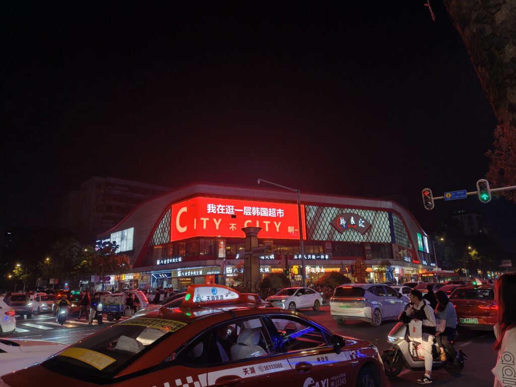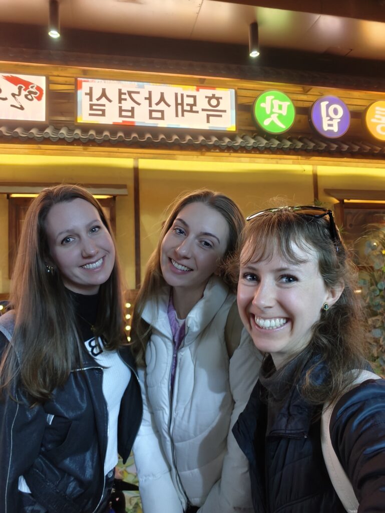 We decided to drop by the Korean supermarket before leaving, so we walked over. They have lots of imported goods including chips and other snacks, instant noodles, a plethora of drinks, and other seasonings and cooking ingredients. I got some powdered kombucha which I tried, and it’s very nice—quite sweet though. Jessica bought us all shots of Vitamin C, and then we headed out. As we were leaving, we saw a Korean-style photo booth and stopped by to check it out. Unfortunately, it was nearly 40 kuai which seemed a bit much for a couple pictures. So we took a free picture in their mirror before leaving.