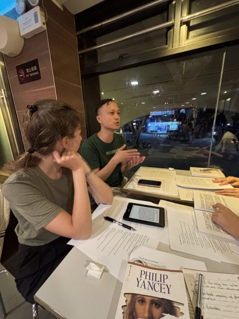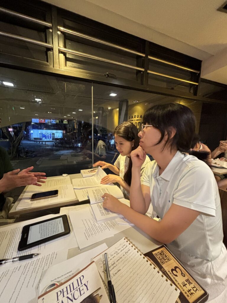 Usually, we meet for lunch or dinner and chat about anything while we eat. After we eat, we pull out the books and sometimes the leader has a summary and a list of questions for us to consider. We don’t usually follow the questions strictly, but it’s nice to have a jumping off point if we hit a lull in the conversation.