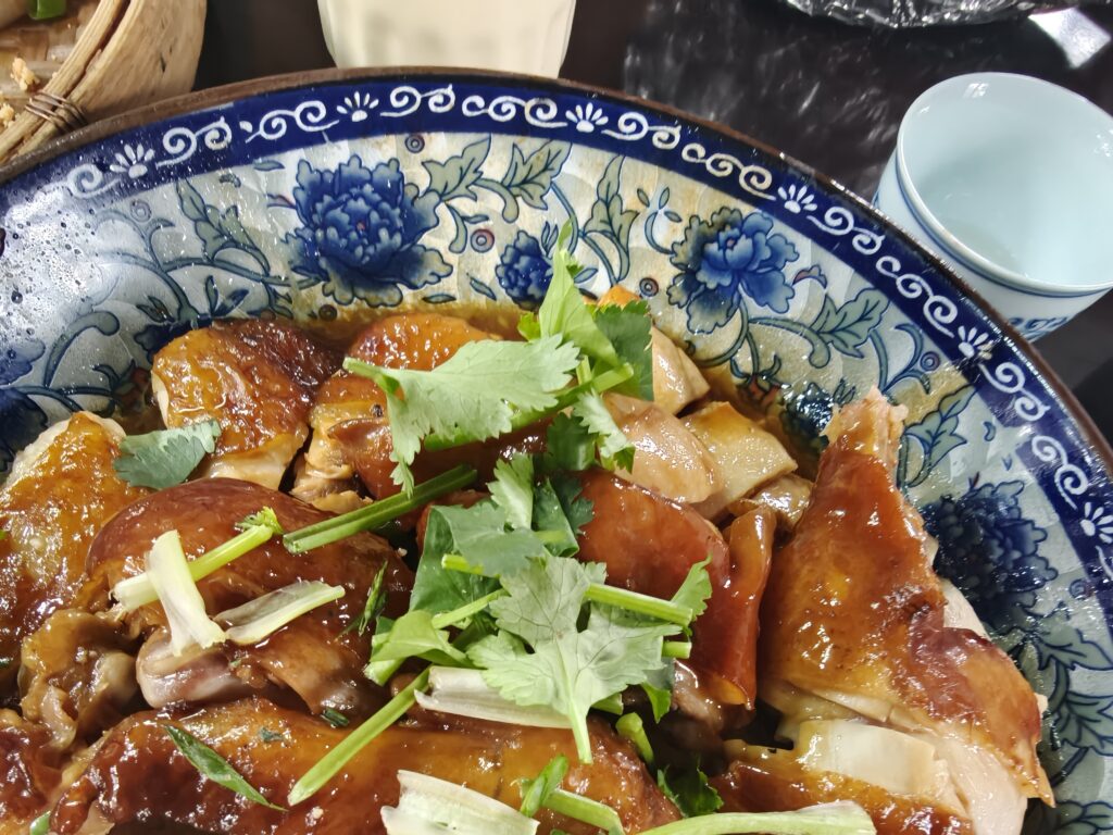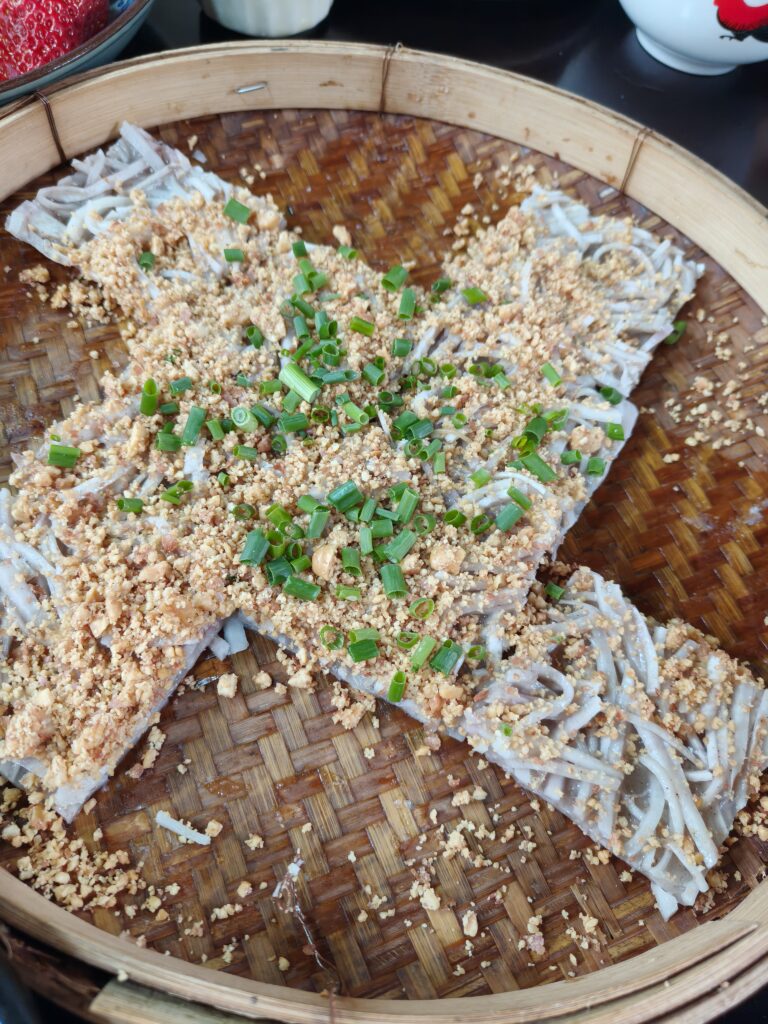 Clara had contacted the boss and placed our order ahead of time, so by the time we arrived and washed our dishes, the food was coming. If you don’t live in Guangdong, washing dishes might sound like a weird thing to do at a restaurant. We don’t actually wash them in the sink when we go to restaurants, but most restaurants provide hot water or tea and a bowl so that we can rinse the dishes before using them to sanitize them a little more.