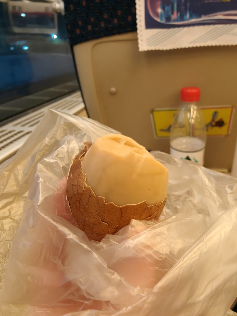 Then we took a bus to the metro and the metro back to the border with Shenzhen and HK. After going through customs, we got a train back to Guangzhou. We waited until the last minute to buy the train tickets because we wanted to get on the earliest train possible, but we also didn’t want to miss it. By the time we bought tickets, it was too late for me to buy it because I needed to sign into a special app that I can’t use (I had an account once and lost the password, and I haven’t figured out a way to get the app to work again, haha). Thankfully, Shirley could help me buy the ticket, so we grabbed some snacks for the train (I got a tea egg—according to MacLehose trail tradition), and we settled in for our ride back home.