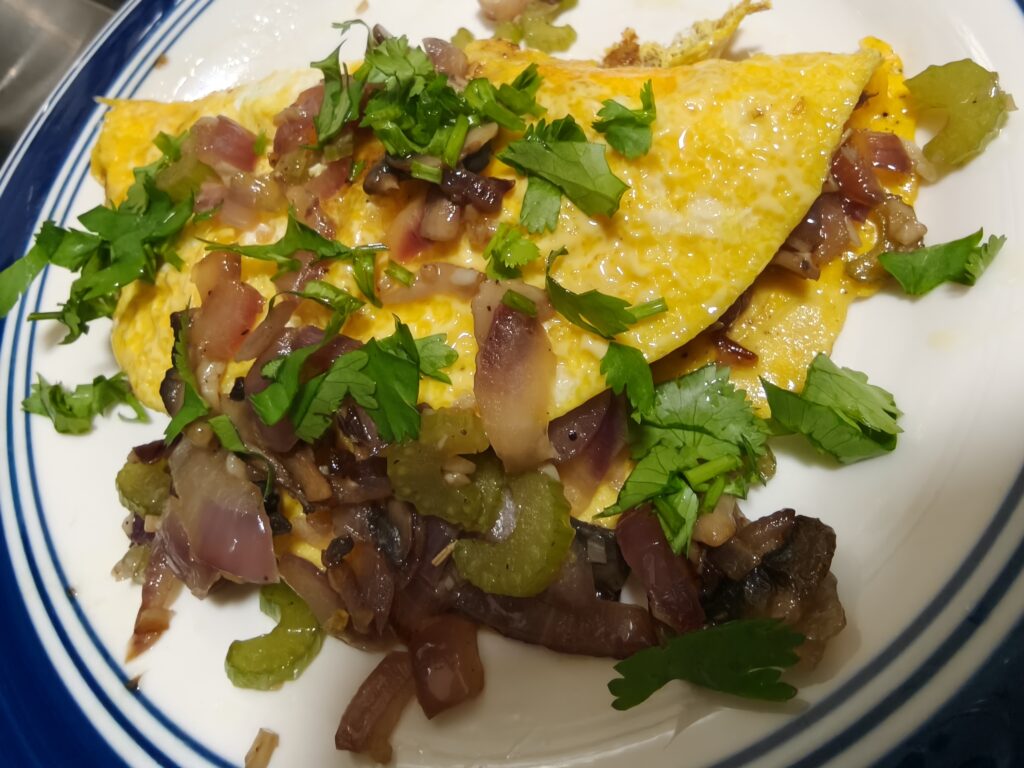Last night, I finished up the mushrooms with an omelet. I also added lime and cilantro, and ooooh, that was great!