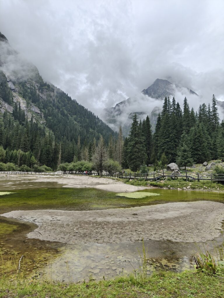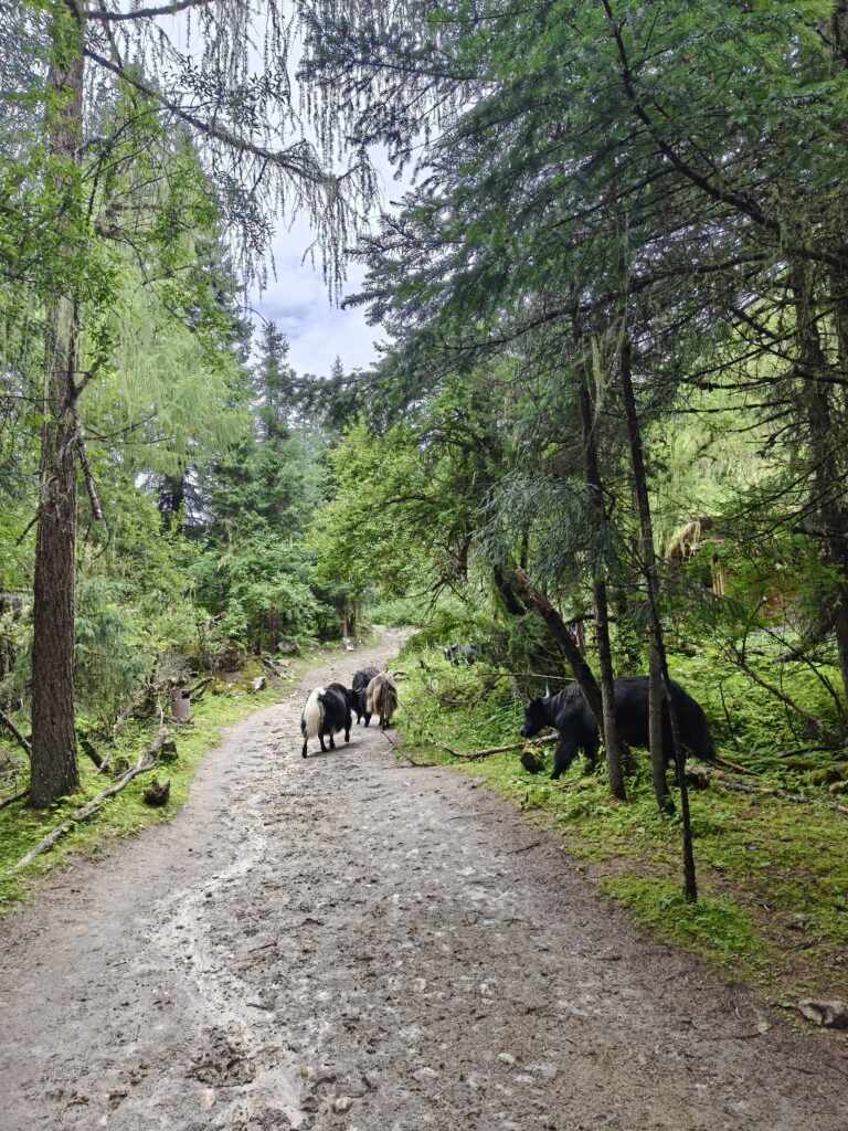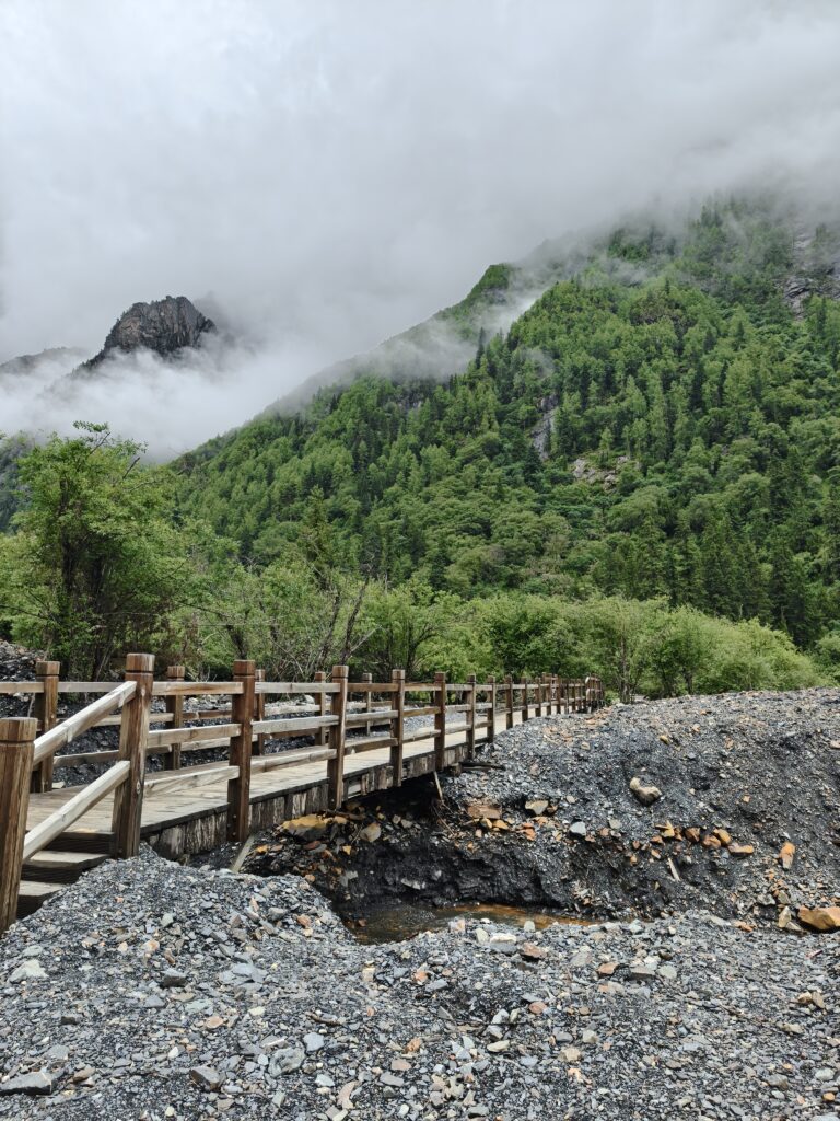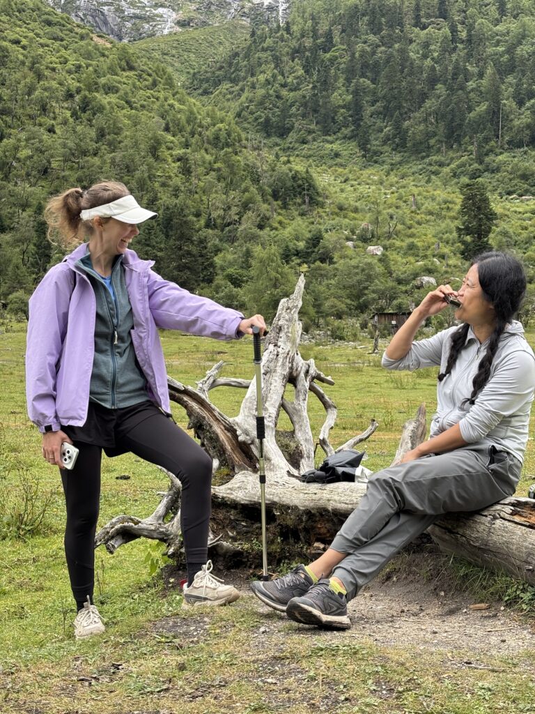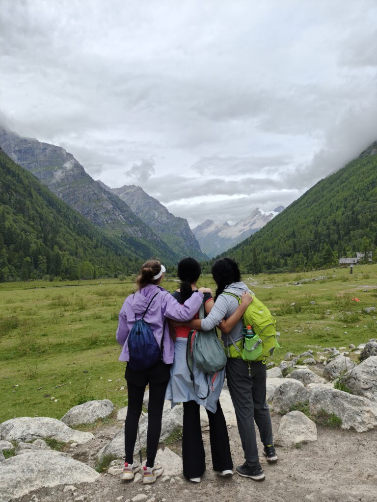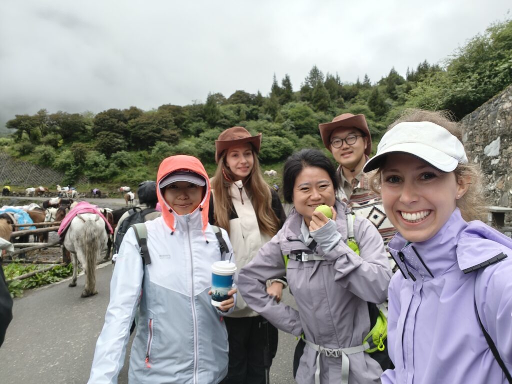 After everyone got breakfast, we headed out pretty close to our planned leaving time. On the way to the hiking trail at 四姑娘山 (Si gu niang shan; Four Beautiful Women Mountain—that’s the literal translation at least, haha), we stopped at a convenience store to get more snacks and food. They had instant cooking rice, and I was pretty excited because that’s another of my favorite hiking foods. I like it because it feels like an actual meal with rice and sauce and preserved meat and vegetables. To be sure, it’s not the healthiest thing, but it seems better than instant noodles.