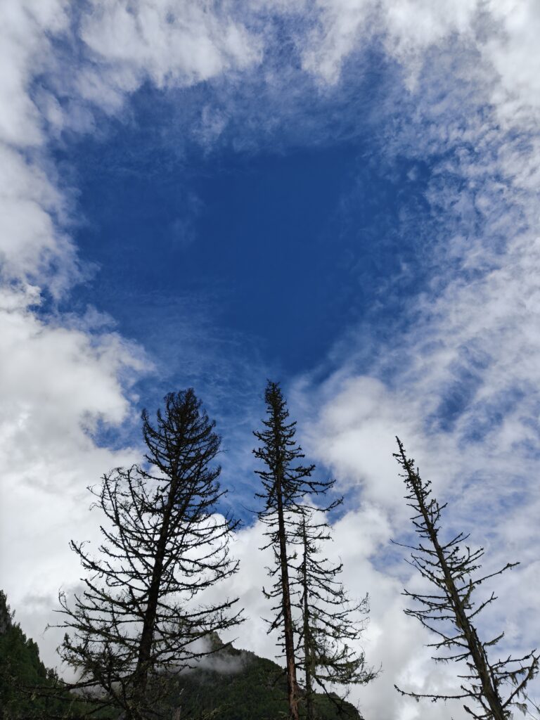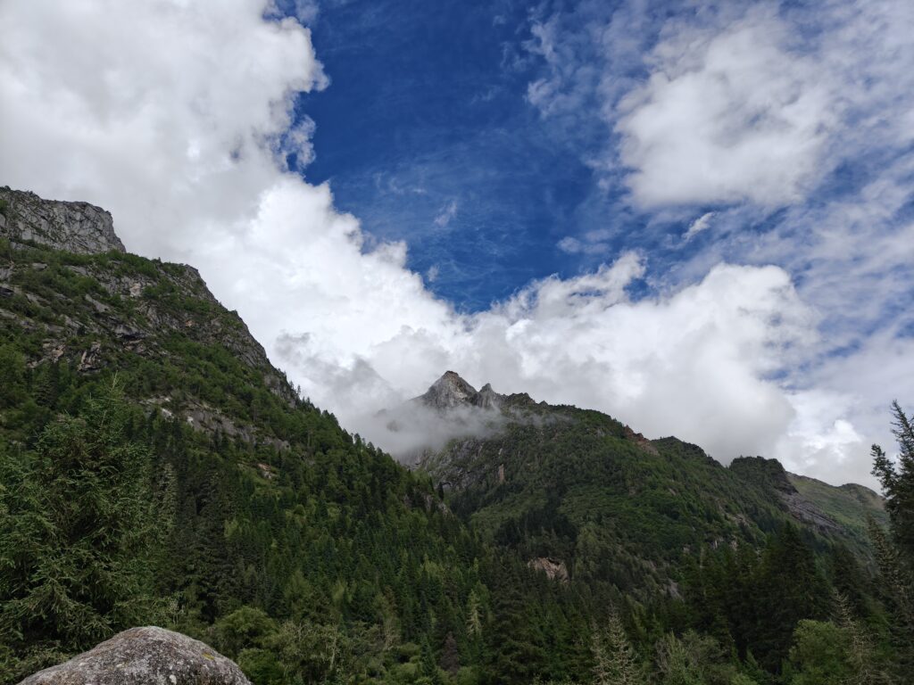 As we walked back, the clouds continued to clear, and we got to enjoy some beautiful blue skies above the mountains. My heart felt filled to overflowing at the beauty all around us. We took more pictures and enjoyed the beauty of the trail through the mountains and the forest. On the way back, we talked a bit more and I enjoyed our fellowship.