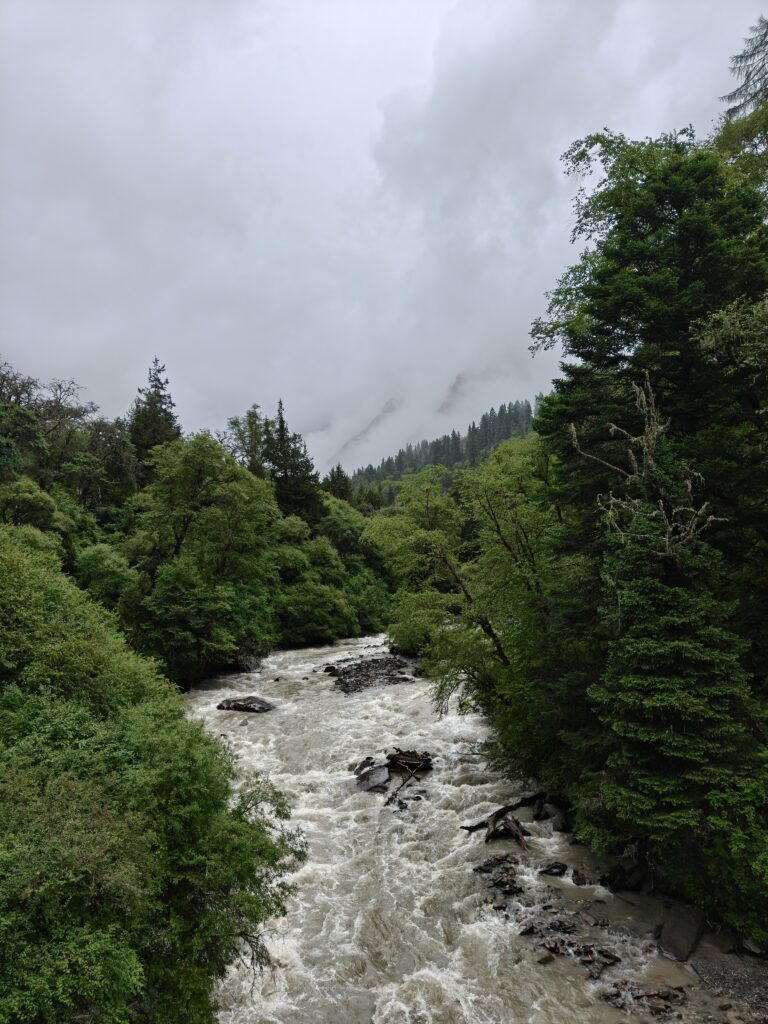 As we walked, I looked around us at the forest. Sometimes I could see the sides of mountains drifting past through the fog and mist, but mostly it just seemed wet and foggy. We got to one look-out place, and I stood in the spot that was marked as having the best view. All I could see was a river, some nearby trees and then fog and clouds. I was pretty disappointed. Here we were in this beautiful place, and I couldn’t see any of it. Plus, it’s not like I got to come here every day—who knows when I would be able to come back to this place.