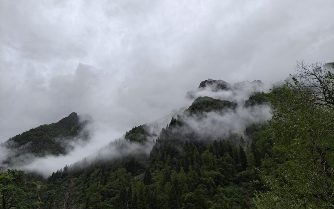 As we walked, I looked around us at the forest. Sometimes I could see the sides of mountains drifting past through the fog and mist, but mostly it just seemed wet and foggy. We got to one look-out place, and I stood in the spot that was marked as having the best view. All I could see was a river, some nearby trees and then fog and clouds. I was pretty disappointed. Here we were in this beautiful place, and I couldn’t see any of it. Plus, it’s not like I got to come here every day—who knows when I would be able to come back to this place.